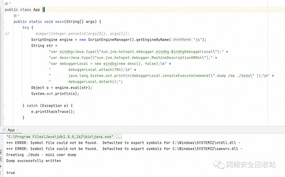 由于许多带签名的正常程序都需要用到内存dump功能,让用户能查看进程在内存中的信息,所以以往的对抗主要是通过一些常见的白进程签名程序,利用程序的正常功能来获取windows lsass中的内存。不过由于用得太多了,基本都已经被各大杀软所监控标记。今天的HSDB属于一个新的小众白名单利用。 核心原理是JVM在调试进程的时候,会调用windbg接口,并且支持输入自定义的windbg语句,从而实现dump lsass 具体代码
