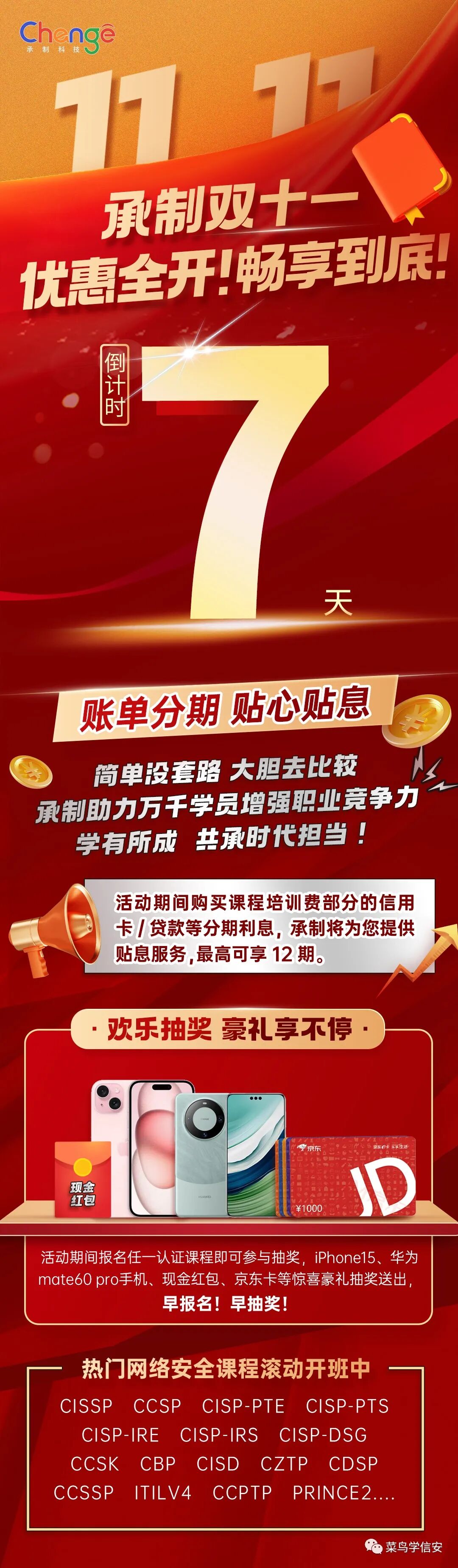 即日起至11月18日报名任一认证课程即可进群参与抽奖,抽奖活动将于11月20日开始,华为Mate60 pro手机、大额京东卡、现金红包多重奖品等你来~