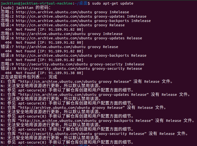 首先在 Ubuntu 系统中更新源,执行sudo apt-get update命令,它主要用于从软件源获取最新的软件包信息。然而,当我在执行这个命令后,遇到了问题,导致无法正常更新。