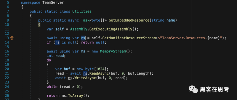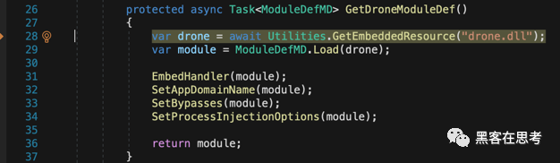 第一步,进入GetDroneModuleDef,调用TeamServer.Utilities中的GetEmbeddedResource