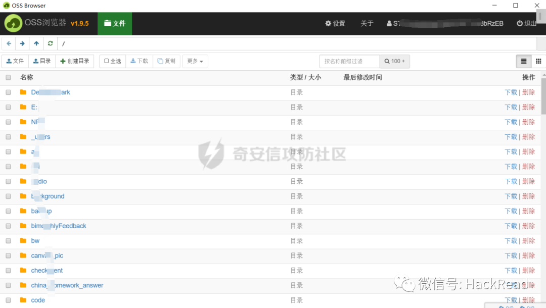 这里因为是阿里云的,所以这里直接使用oss browser来进行利用,利用成功: