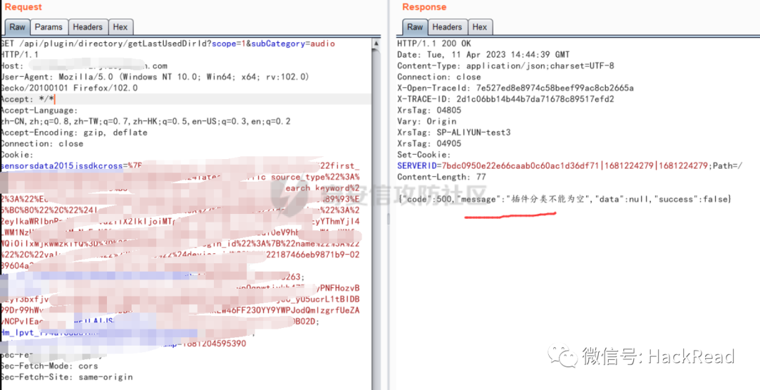 其中响应包中响应的“插件分类不能为空”让我百思不得其解,不知道是缺了什么参数。那么这里就再回到js中看看吧,果然,给我发现了端倪: