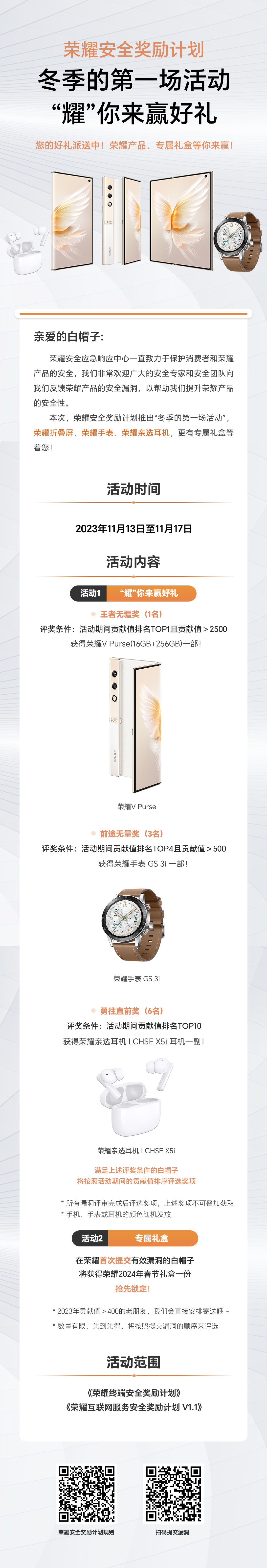 冬季的第一桶金!荣耀安全奖励计划,等你赢好礼