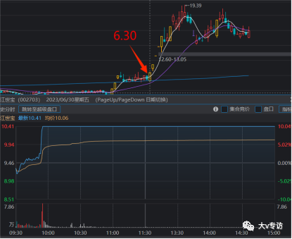 当日翠微股份二波二板拉板之后,金财互联启动,但是翠微股份后面让位,金财互联卡位,在第二天翠微股份继续分歧调整,金财互联烂板暴量分歧,继续卡住位置和情绪,然后周末利好出现,金财互联成功成为补涨龙。这一种是出现于,龙头主升预期情况下的情绪发生,出现了分时的龙头卡位现象,并且有利好出现,导致情绪的一致性比较强。