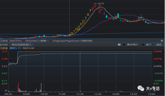 案例六:6.13中通客车复牌第二日,浙江世宝开启补涨,12个交易日197%涨幅。