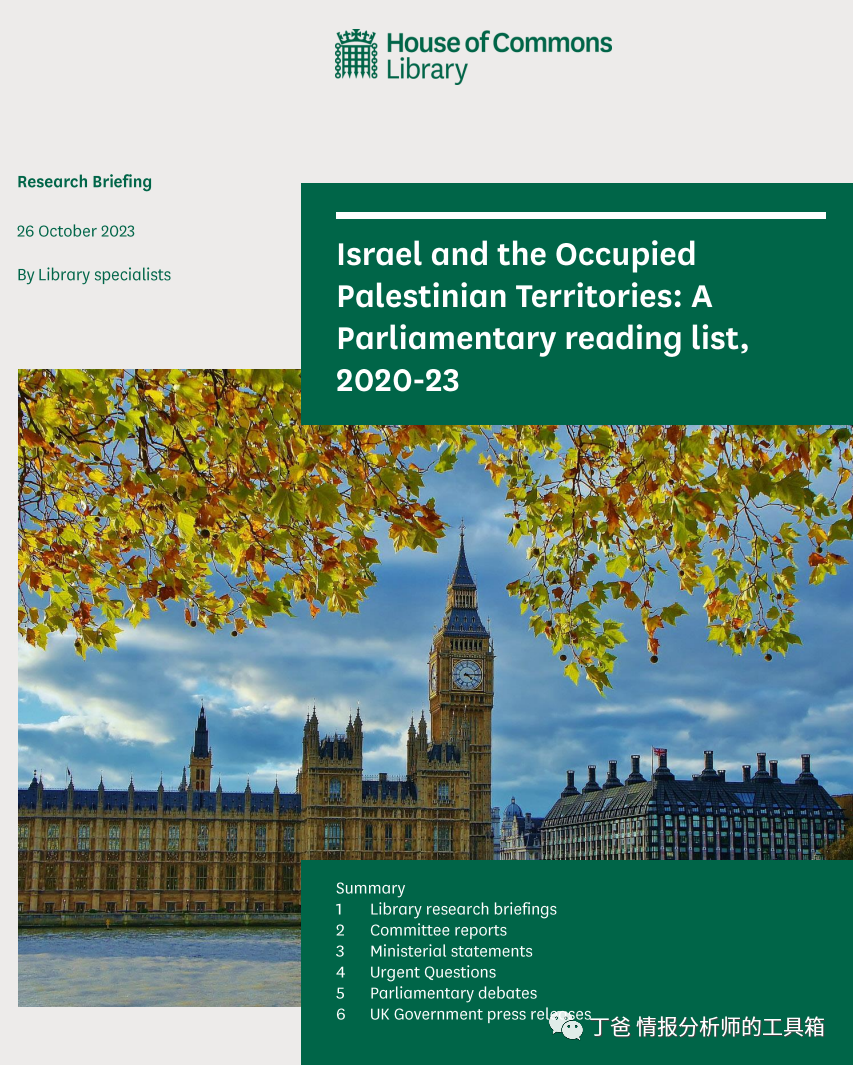 这份阅读清单提供了英国下议院图书馆文件、委员会报告、议会材料和本届议会期间与以巴冲突有关的英国政府新闻稿的链接。它还包括关于当前冲突相关问题的材料,如伊朗在中东的影响和真主党在黎巴嫩的立场。