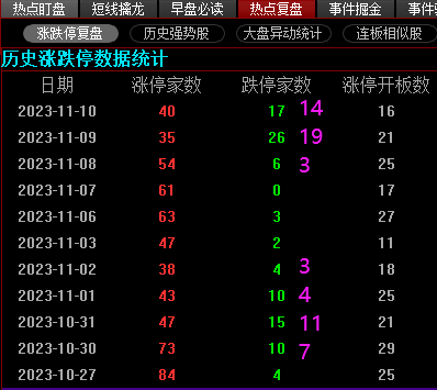 上面功能是同花顺的普通L2,近期更新升级后有个短线擒龙工具,点进去如上图,找【热点复盘】,找【涨跌停复盘】。
