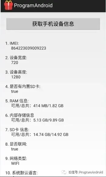 获取手机IMEI、宽、高、是否有SD卡,RAM、ROM、SD卡、是否联网、网络类型