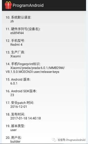 那么如何获取这些设备信息呢? Android中 通常通过 android.os.Build类方法可以获取更多手机设备信息。