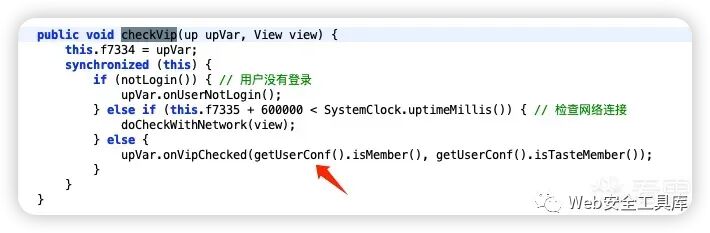 选择第一个函数,发现无有用信息,继续进入checkVip函数