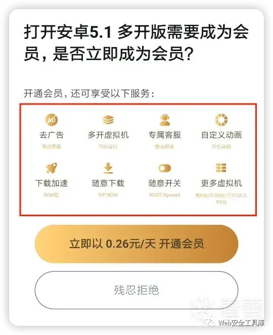 同时弹出一个对话框,应用也贴心的告诉我们VIP的使用场景