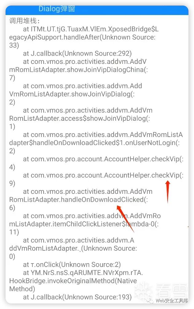 且函数名称并没有被混淆,能够从调用堆栈读出以下逻辑:点击下载按钮->检查是否VIP->用户没有登录->显示购买VIP的弹窗