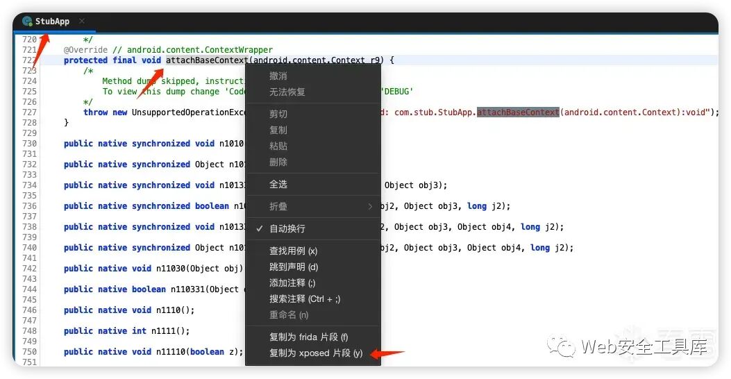 1 2 3 4 5 6 7 8 9 | XposedHelpers.findAndHookMethod("com.stub.StubApp", param.classLoader, "attachBaseContext", android.content.Context.class, new XC_MethodHook() {