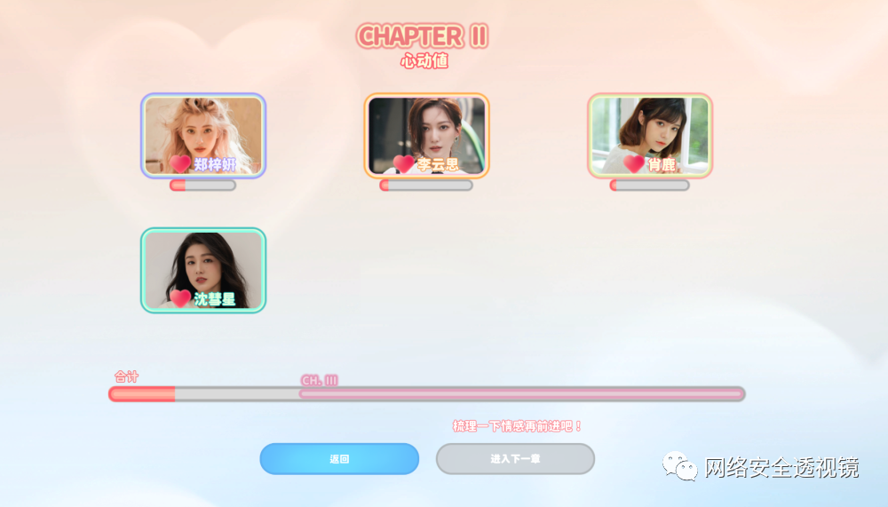不过我一直想不通,这么狗血的剧情,为什么这个游戏这么火!!!怎么选择都有美女心碎啊,我也是醉了,好像是没法完美过关。