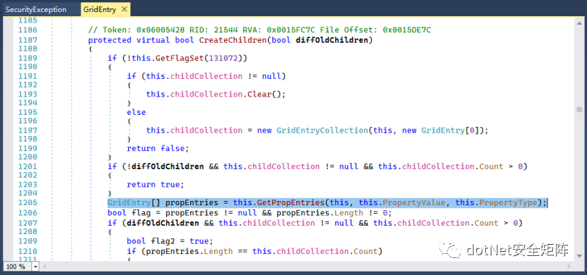 Refresh方法触发RefreshProperties、UpdateSelection、CreateChildren这一系列的多个方法的调用,然后进入GridEntry.GetPropEntries,如下图所示