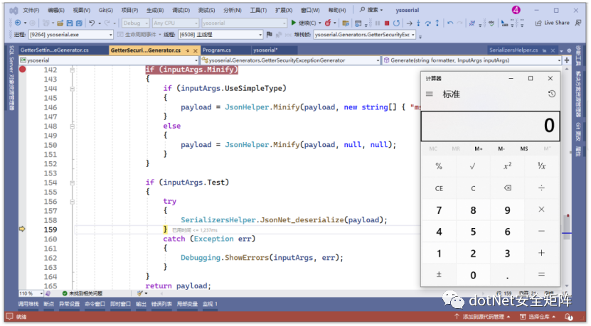 最后通过上面这段JSON.NET代码完成整条攻击链路的反序列化,成功启动本地计算器进程,如下图所示