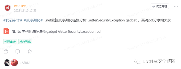 更多.NET反序列化漏洞列表:https://github.com/Ivan1ee/NET-Deserialize