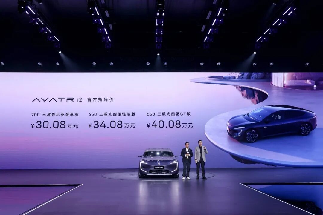阿维塔昨日宣布,旗下新车阿维塔 12 上市 36 小时累计大定已突破 6700 台。阿维塔 12 共 3 个配置,价格区间为 30.08 万元 - 40.08 万元,将于 12 月初开启交付。据介绍,阿维塔 12 秉承「未来美学 Future Elegance」的整体设计理念,采用碟翼式前脸,可选前挡风下方的「上弦月 HALO 交互屏」和全天候电子外后视镜。全系搭载基于 HarmonyOS 4 开发的鸿蒙座舱,及华为高阶智能驾驶系统 HUAWEI ADS2.0,标配 3 颗激光雷达,号称全国都能开。动力方面,该车基于 750V 高压平台打造,最高充电功率可达 240kW,提供单 / 双电机两种版本,综合功率分别为 230kW / 425kW,双电机车型零百加速时间为 3.9 秒,续航为 650km(四驱版)、700km(后驱版)。天猫京东公布双 11 战绩