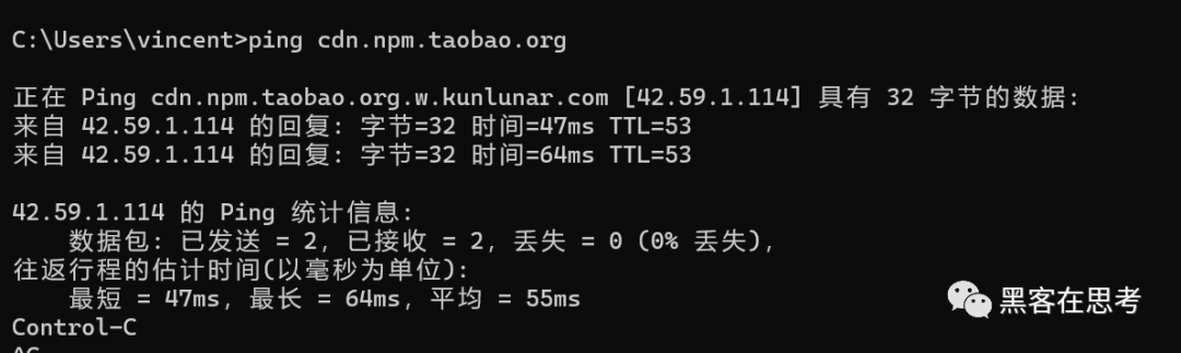 ping发现其CDN的cname域名为cdn.npm.taobao.org.w.kunlunar.com,使用了阿里云的CDN
