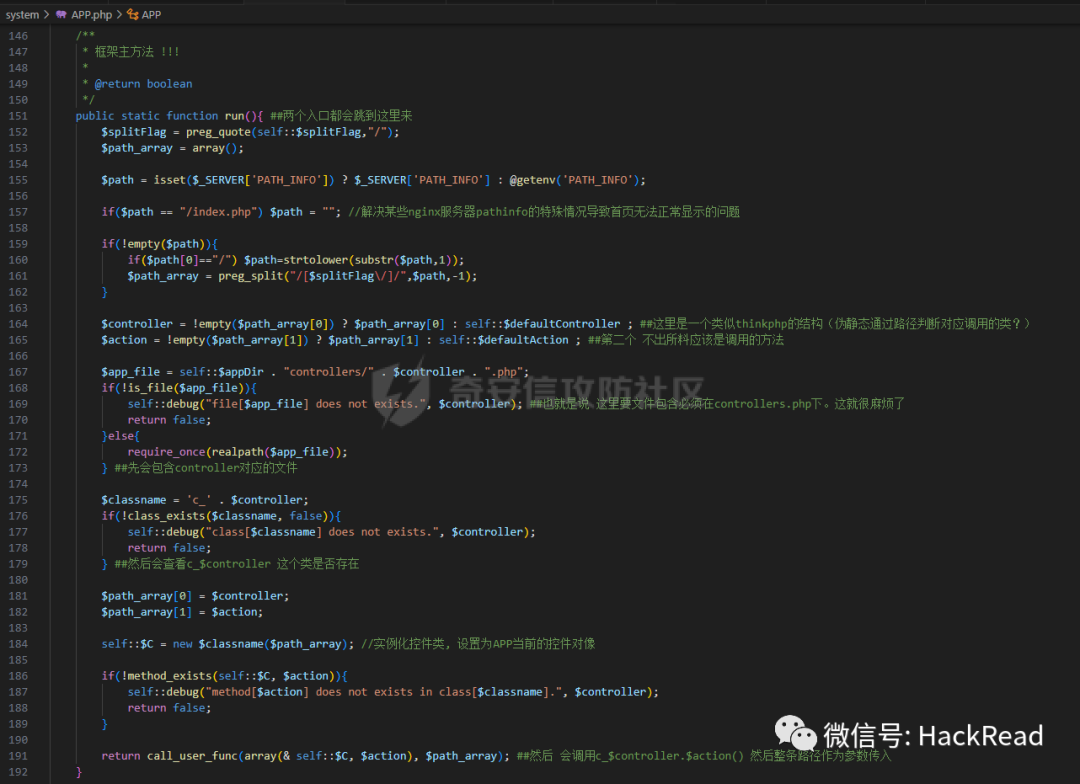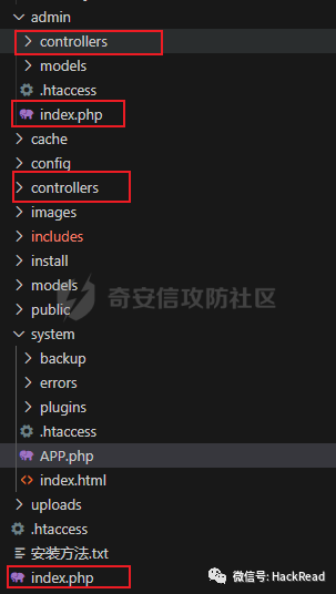 很常见的路径转方法(伪静态?),如/index.php/[controller]/[action]/[arag1]/[arg2]。但由于其控制器分别在controllers和admin/controllers下,而访问控制脚本的函数使用的是不可控变量,所以不能通过普通控制器入口访问管理员的控制器。