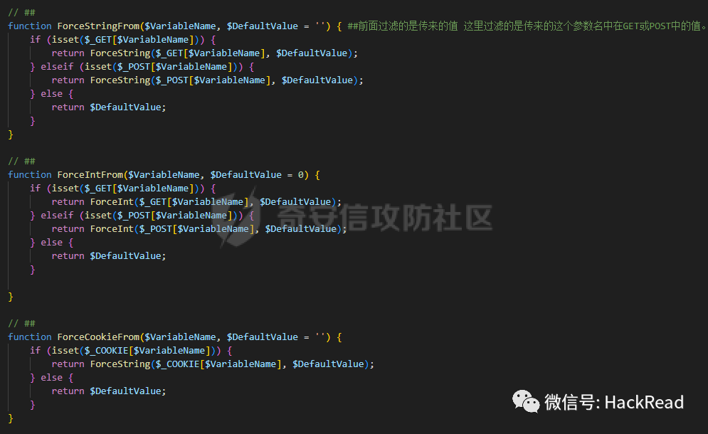 这里的过滤文件为functions.globals.php。不过这里的过滤函数都不是主动调用的(有些CMS会包括此文件 然后此文件中会先一步处理所有参数,这里完全就是写了函数等待调用)