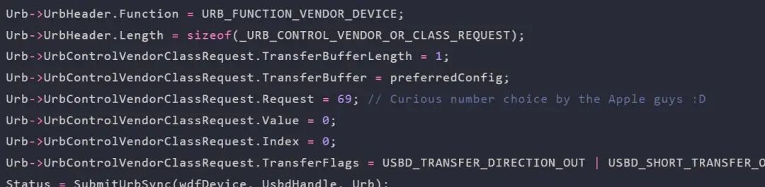 对于大多数与USB相关的操作,苹果使用usbdlib,这有点令人不可思议,因为这是一个WDF驱动程序,他们可以使用wdfusb标头,简化事情。