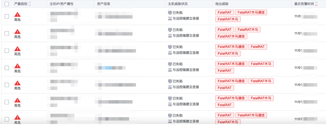 最终在内存中加载最终的远程控制木马FatalRAT,主要实现的功能比如远程桌面,键盘记录,文件操作,数据窃取,shell执行等功能。 最终回连C2为caishen.store:3306 。 行动建议