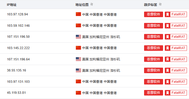 根据统计攻击者资产发现,绝大部分的文件托管服务器都是中国香港以及美国洛杉矶等非大陆IP。攻击者轮换IP的速度非常快,每次活动中的攻击次数非常多,IP和域名存活周期非常短。 ![]()