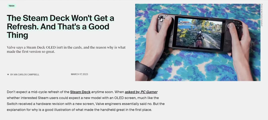 10 号凌晨的一条游戏主机新闻,引起了两拨人的叫喊。Steam Deck OLED 官宣新闻. 图片来自:theverge.com游戏公司 Valve 在官网推出了全新 Steam Deck ,时隔一年多的突然更新让很多人措手不及,尖叫的同时又面带喜悦的等等党,又迎来了一次常规的胜利,各方面体验都非常好的 Steam Deck 终于撇弃了饱受诟病的原版 LCD 屏幕,闪烁的通病大概率会被解决。![]()