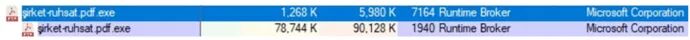 研究人员发现的二进制文件似乎是特定攻击行动的一部分,被发现的诱饵文档也证明了这一点。不幸的是,研究人员并未发现最初的感染向量。当然,初始感染可以通过多种方式实现。Sirket-ruhsat-pdf.exe