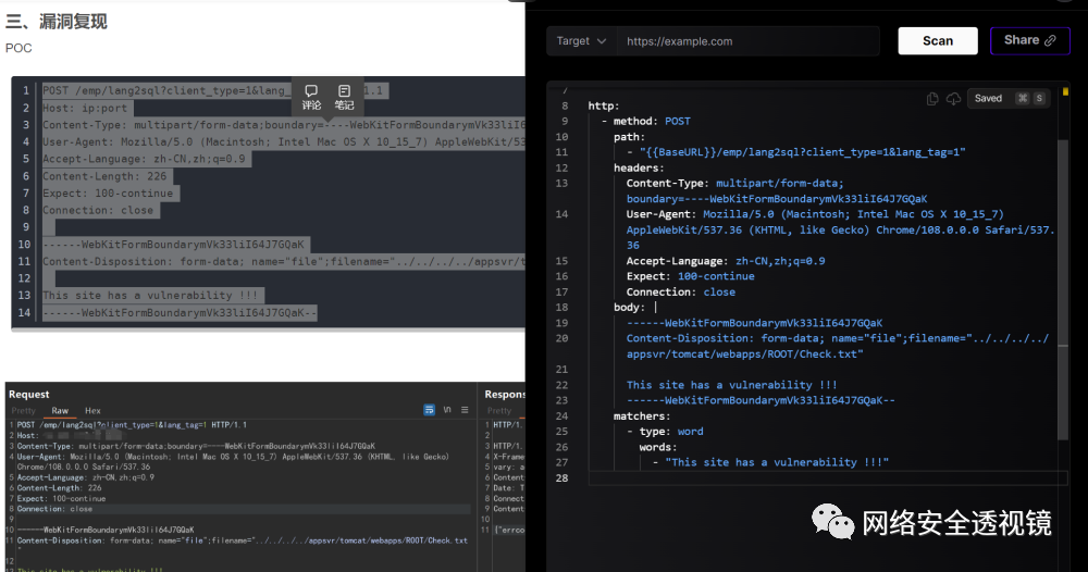 昨天建了一个公开漏洞POC库,想用neclei ,但是写漏洞检测的yaml实在太麻烦了。至今没有找到能够方便编写yaml的工具。平时时间就那么一点点,一个个漏洞去写岂不是累死了。