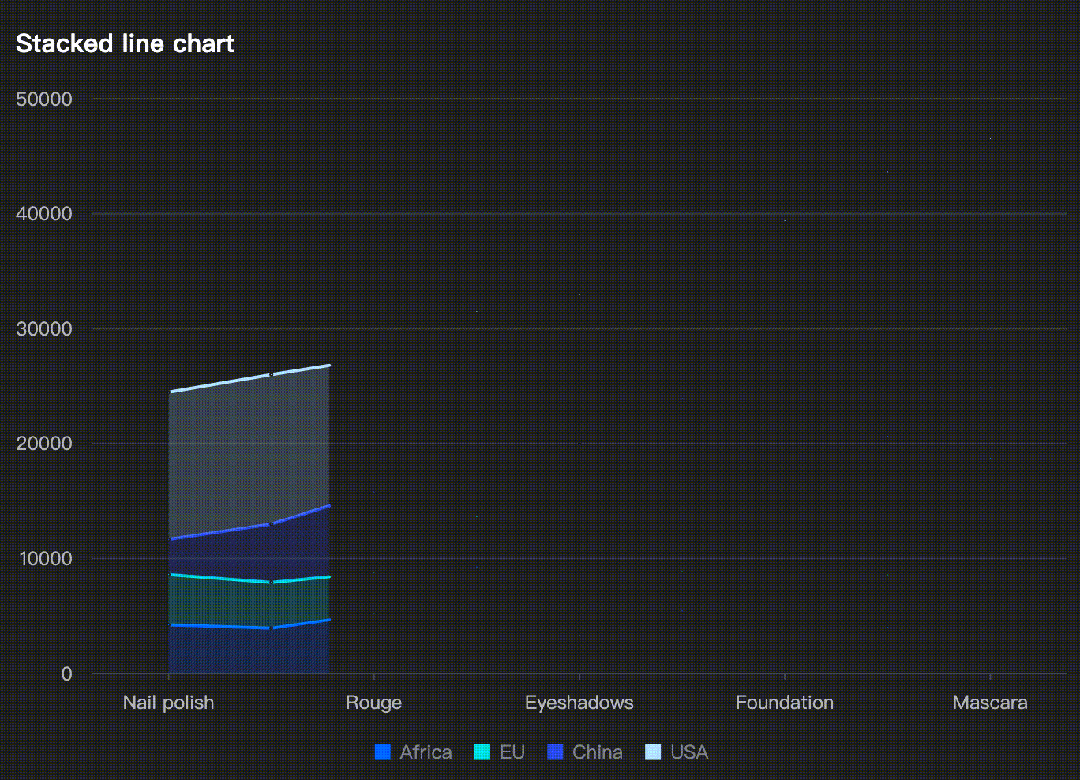 除了提供多种预定义的图表类型,如柱状图、折线图、饼图等,我们还支持用户根据自己的数据特点和展示需求,创建和自定义各种类型的图表。使用VGranmar图形语法,你可以完成数据到图形的自定义映射,画布的自定义布局,动画效果和流程的自定义编排以及交互功能的自定义配置。