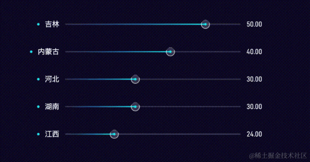 首先,要区分构成排行榜需要的图元类型,它们分别是矩形、标题、标签、装饰点。其次,需要确定图元的属性与数据的对应关系。