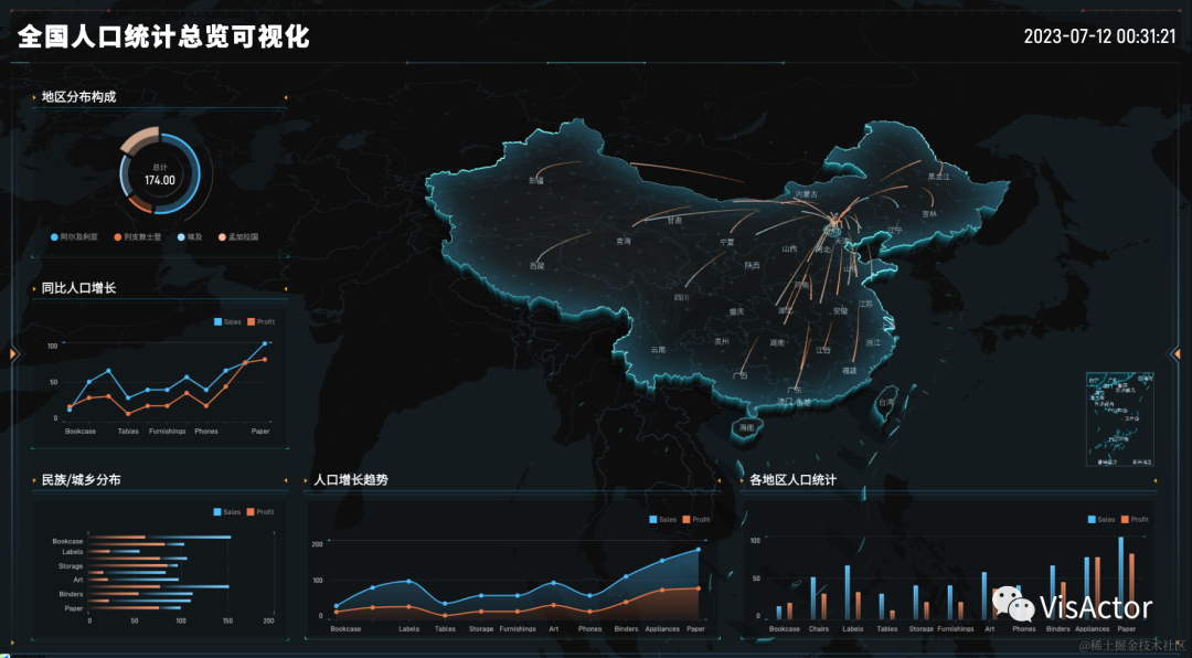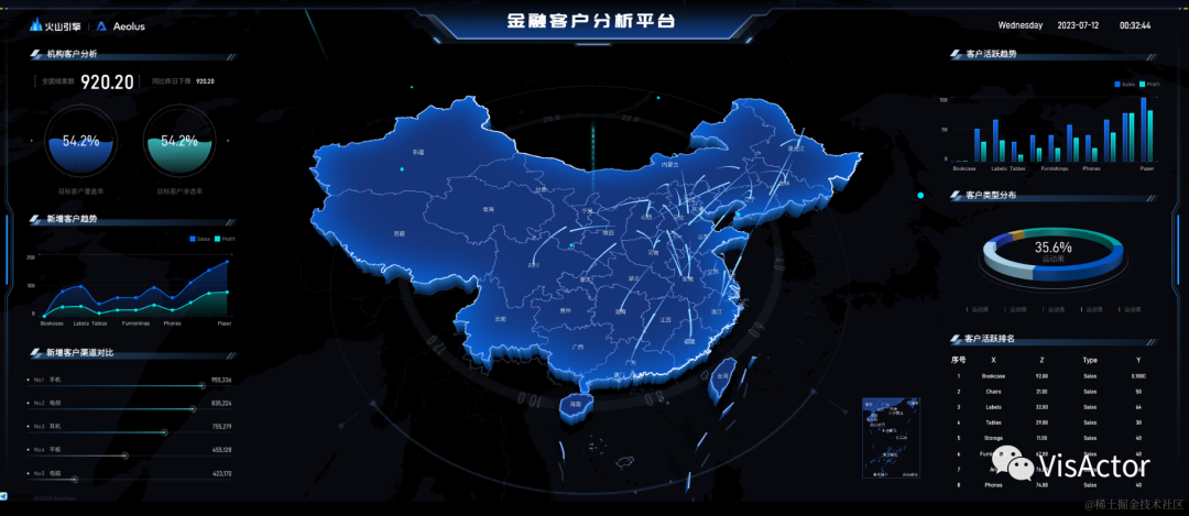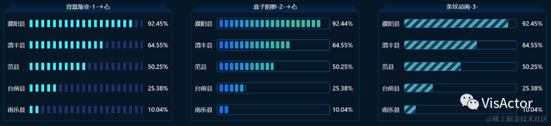比如在大屏新增的排行榜组件并非VChart既有图表类型,而是通过图形语法VGrammar完全自定义实现。