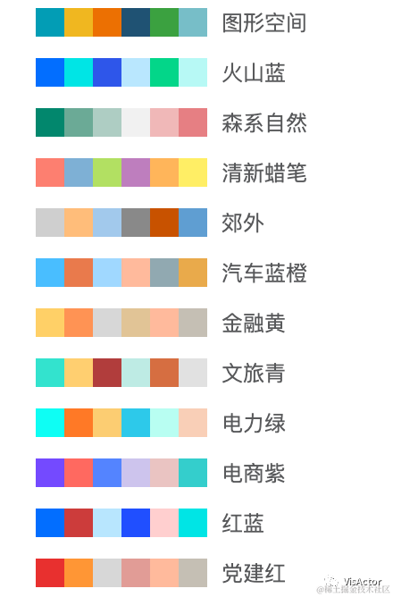 色板的具体信息开放出来供大家参考: https://github.com/VisActor/VChart/blob/develop/docs/assets/themes/colors.json