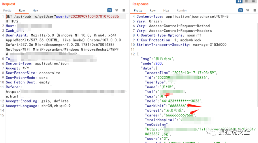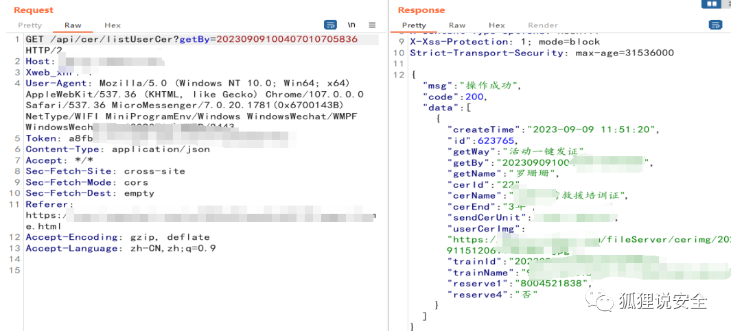 点击时抓包修改为他人id,可越权查看他人的证书信息