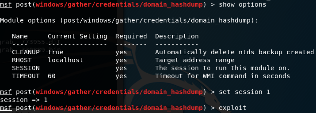 接下来我们使用domain_hashdump模块获取域账号和域Hash信息。在msf中输入命令