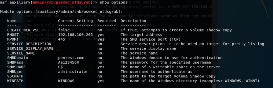 use auxiliary/admin/smb/psexec_ntdsgrab图6-37配置metasploit获取全部Hash