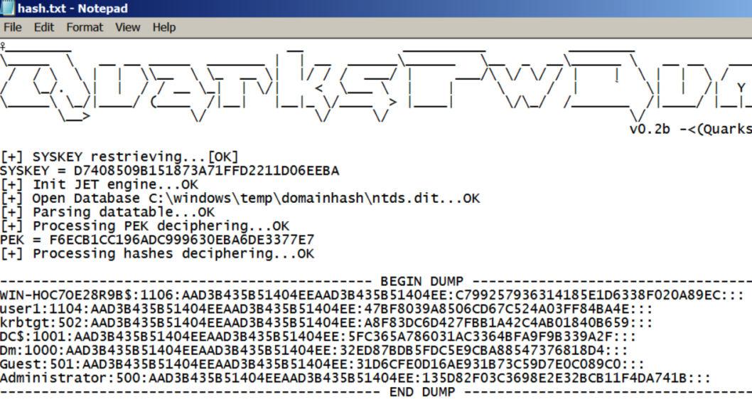 vshadow.exe+QuarksPwDump.exe快速导出域账号及域Hash
