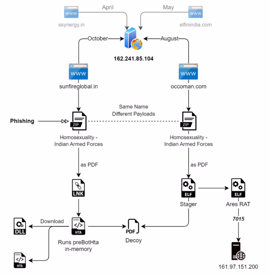 IT之家经过查询得知,SideCopy的攻击行动最早可追溯自2019年,长期以来都是针对南亚国家下手,而Seqrite研究人员指出,从今年初他们每个月几乎都会看到该黑客组织发起新攻击行动,也陆续发现黑客开始启用一系列新工具,例如 Double Action RAT、一个以.NET开发的RAT木马程序,并也开始通过 PowerShell 远程执行命令。