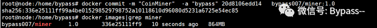 docker commit -m "CoinMiner" -a "bypass" b4536a12a341 bypass007/miner:1.0(2)使用docker diff命令查看容器内文件状态变化,通过容器内文件的变化,可以简单地窥探攻击者入侵容器的蛛丝马迹,做了什么操作,改了哪些系统文件。