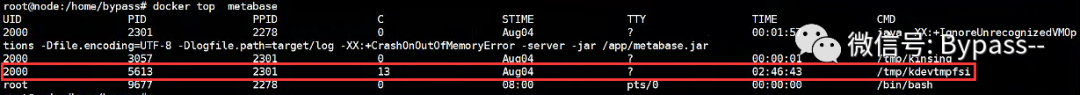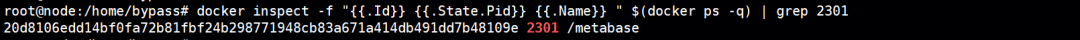 (3)通过进程PID查找对应容器名称,容器名:metabase。