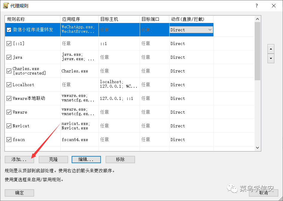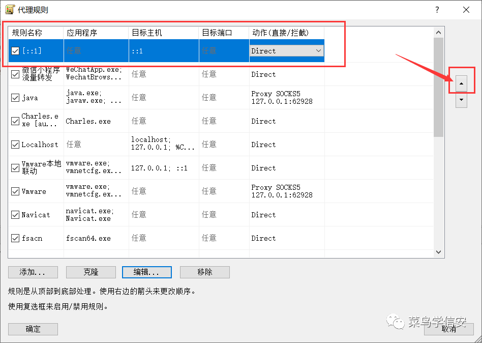 由此,这条规则在代理列表里面要处于最高(优先进行),如下: