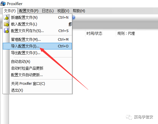 然后点击 Proxifier 左上角的“文件”-->“导入配置文件”,选择解压出的 Default.ppx 文件即可导入成功