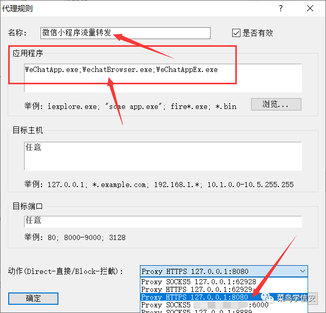 WeChatApp.exe;WechatBrowser.exe;WeChatAppEx.exe这里的代理服务器我使用的是 HTTPS://127.0.0.1:8080 这个要看你抓包软件中的配置了,如下: