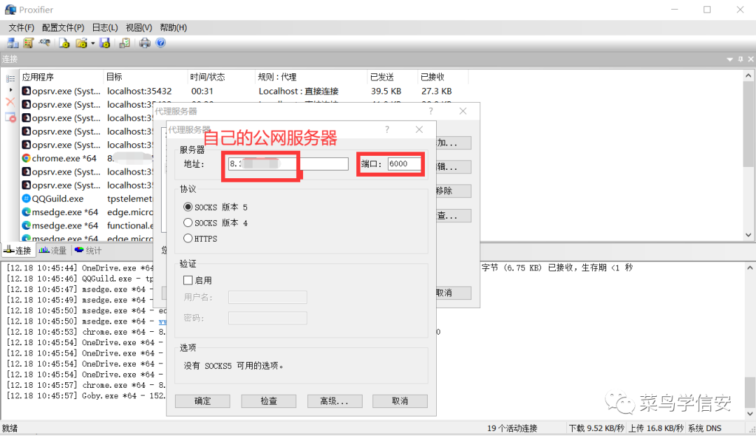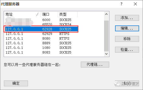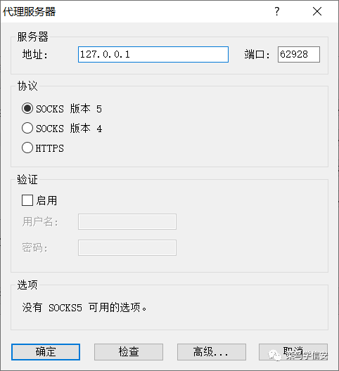 找到代理的服务端的IP和端口(本地代理服务就是 127.0.0.1)并填写和选择对应代理协议,如下图所示: